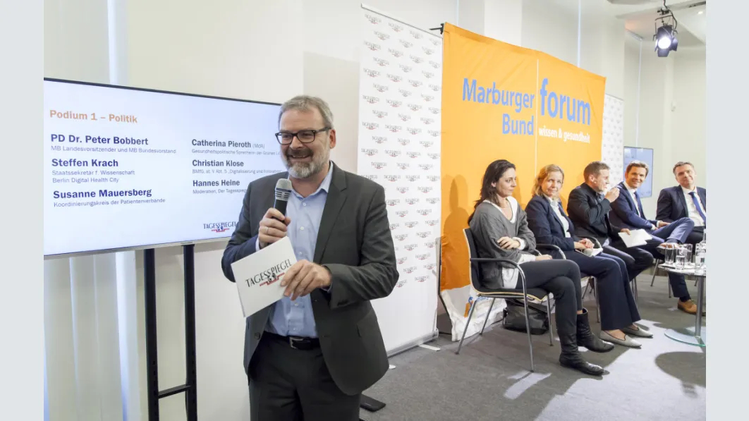 Moderiert wurde der Abend vom Tagesspiegelredakteur Hannes Heine. Unter den vielen Gästen waren u. a. der frisch gewählte neue Vorstandsvorsitzende des Weltärztebundes, Prof. Frank-Ulrich Montgomery, Ulf Fink, Veranstalter des Hauptstadtkongresses, aber auch einige MB-ler aus dem Bundesgebiet, wie unser MB BV-Mitglied Susanne Johna, Ingo Flenker oder Matthias Fabian. Allen war klar, die elektronische Patientenakte muss kommen und zwar maßgeblich geprägt durch die Ärzteschaft, sonst werden andere den Mehrwert der ePA für die PantientInnen, nämlich die digitale Erfassung und Auswertung anbieten.