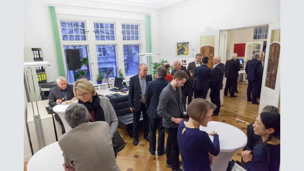 Am 25. Januar begrüßte Peter Bobbert, unser Landesvorsitzender über 100 Gäste zum 9. Bleibtreuempfang in unserer Geschäftsstelle. Dabei waren u.a.: die beiden Staatssekretäre für Gesundheit aus Berlin, Martin Matz und aus Potsdam, Andreas Büttner, unser Bundesvorsitzender Rodolf Henke (MdB), und weiterhin aus dem Bundestag, Gesine Lötsch (LINKE), die Vizepräsidentin der BÄK, Martina Wenker, der Präs. der LÄK Brandenburg, Frank-Ulrich Schulz, der Präs. der LÄK Rheinland-Pfalz, Günther Matheis, aus NRW Ingo Flenker und aus dem Berliner AH die ges. pol. Sprecher der SPD, Thomas Isenberg und der FDP, Florian Kluckert und viele andere mehr! Nach dem offiziellen Teil gab es gute Musik vom Gitarrenduo Urban-Jazz und Gespräche der Gäste aus Politik, Wissenschaft, Medien und unseren gesellschaftlichen Bündnissen.