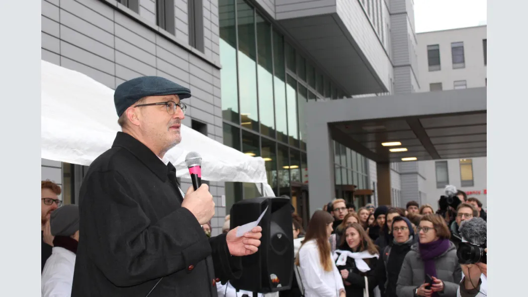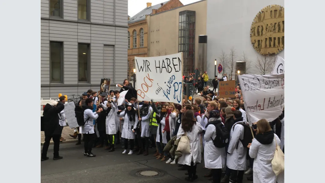 Am 16. Januar organisierten BVMD und FSI der Charité eine riesige Studidemo - laut, intelligent, engagiert - vor dem Bettenhochhaus der Charité für ein "Faires PJ"