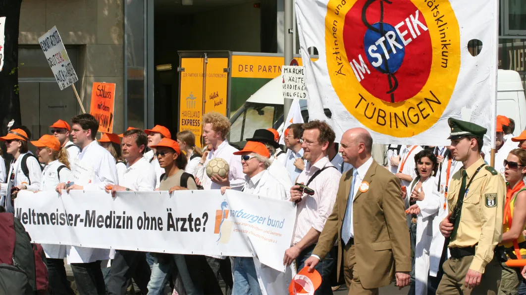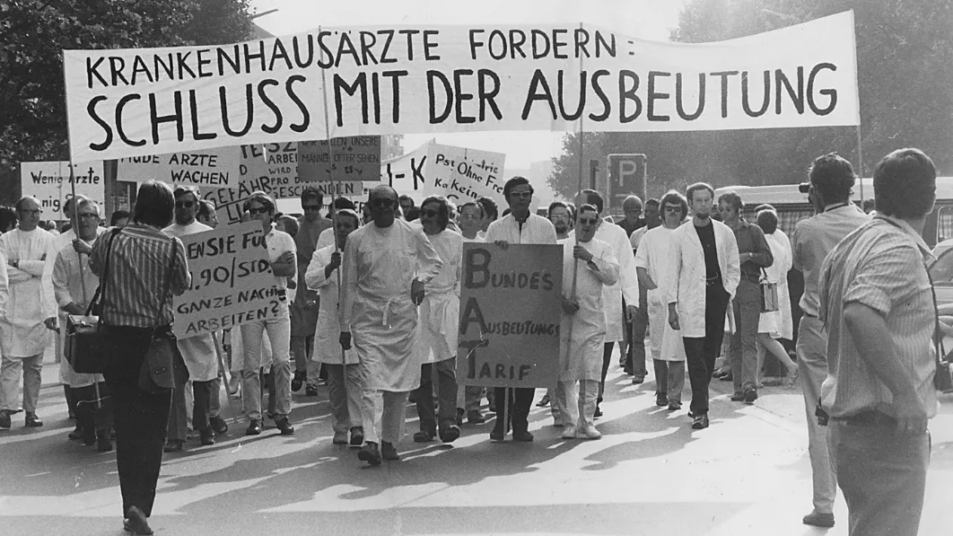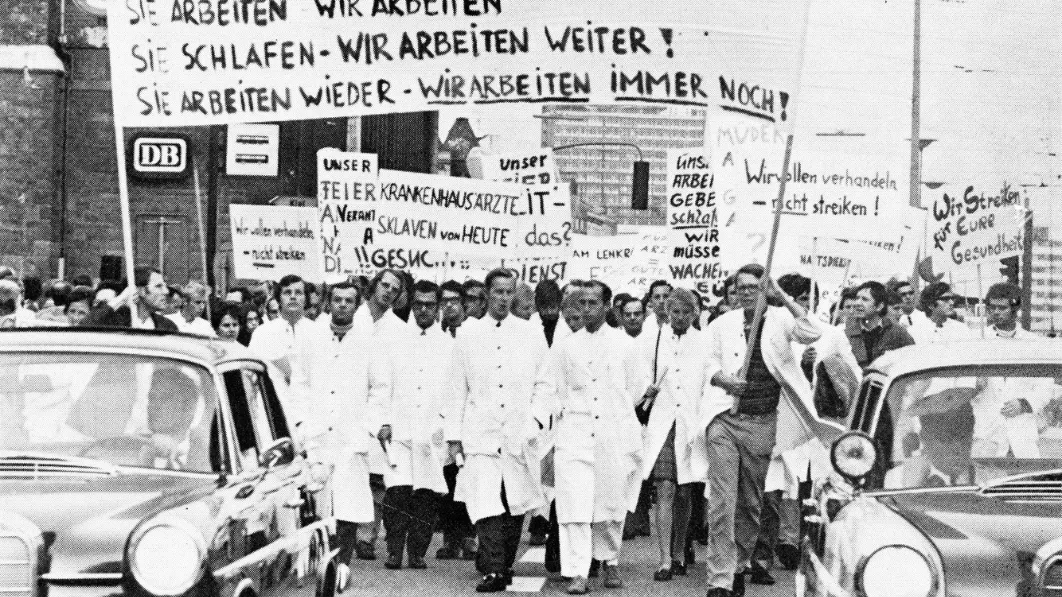 Ende der 1960er Jahre nimmt die Kritik der Ärzte am Bundesangestellten-Tarifvertrag (BAT) für die Beschäftigten im öffentlichen Dienst stetig zu. Die angestellten Ärzte sehen sich stark benachteiligt, ihre spezifischen Arbeitsbedingungen werden nicht berücksichtigt. Der Marburger Bund kündigt schließlich zum 30. November 1969 den Tarifvertrag und fordert die sofortige Angleichung der Arbeitszeiten. Es kommt zu ersten Arbeitskampfmaßnahmen. Die Streikaktionen werden von Solidaritätsbekundungen anderer Ärzteverbände begleitet. Nach drei Verhandlungsrunden mit den öffentlichen Arbeitgebern werden 1972 wesentliche Verbesserungen für die Ärztinnen und Ärzte vereinbart.