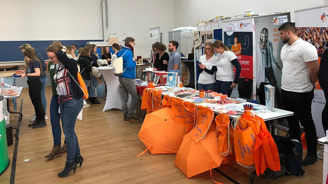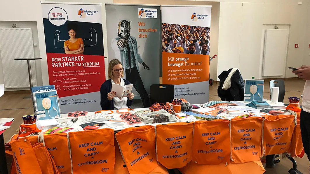 Die intensiven Gespräche wurden später auch am Stand des Marburger Bundes auf dem „Markt der Möglichkeiten“ vertieft. Das Informationsangebot des MB für Studierende und Berufseinsteiger wurden mit viel Interesse begleitet. Vor allem das neue Pixi-Buch erfreute sich großer Beliebtheit: Es kann als Webegeschenk für das von der bvmd unterstützte, ehrenamtliche Projekt „Teddybärkrankenhaus“ an den Unikliniken vielfältig eingesetzt werden.