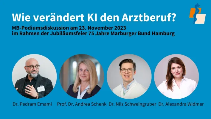 „Ich glaube es wird keinen Bereich in der Medizin geben, in der die Künstliche Intelligenz nicht eine Rolle spielen wird“, sagte Dr. Pedram Emami, 1. Vorsitzender des MB Hamburg und Präsident der Ärztekammer Hamburg, zu Beginn der Diskussion. Entscheidend sei, wie Fragen zur Umsetzung, Finanzierbarkeit und Teilhabe beantwortet würden.