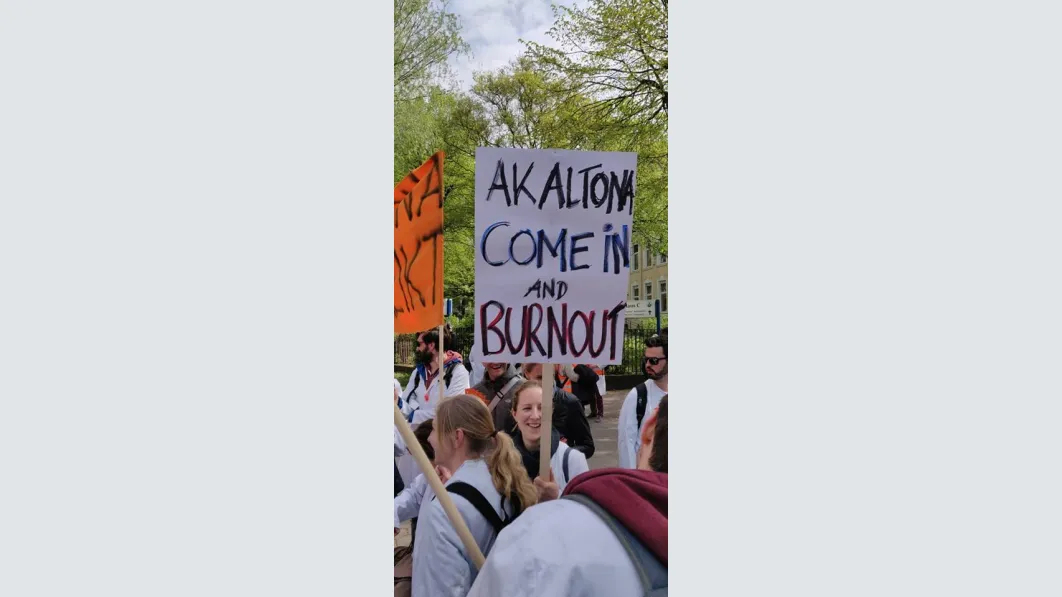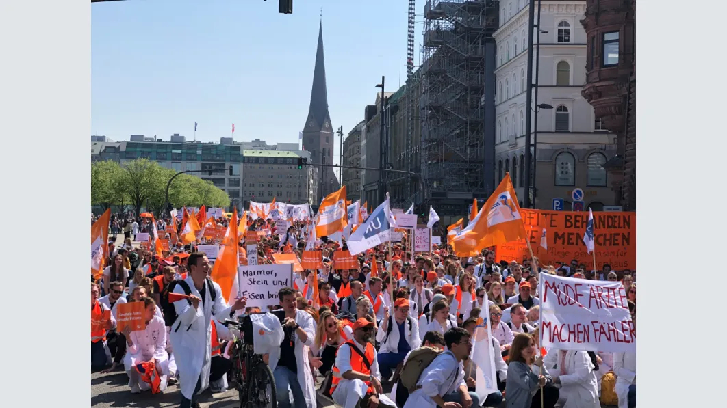 Die Demonstration verlief erwartungsgemäß sehr bestimmt und überzeugt, aber friedlich. Beeindruckend war insbesondere die Zahl der jungen Ärztinnen und Ärzte, die an der Demonstration teilnahmen. Die Streikenden wiesen auf Plakaten auf harte Arbeitsbedingungen und schlechte Bezahlung hin: „Müde Ärzte machen Vehler“ oder „Nachts mach ich’s fast umsonst“. Die hohe Teilnahmequote – nahezu 70 % der in den bestreikten Kliniken tätigen Ärztinnen und Ärzte – zeigte deutlich, was Emami bereits im Vorfeld zur Situation an den Hamburger Häusern festgestellt hatte: „Da brodelt es ordentlich.“