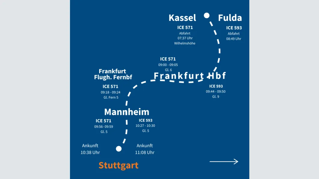 - Gemeinsame Anreise nach Stuttgart oder München planen, und ggfs. gemeinsamer Treffpunkt mit Kollegen festlegen