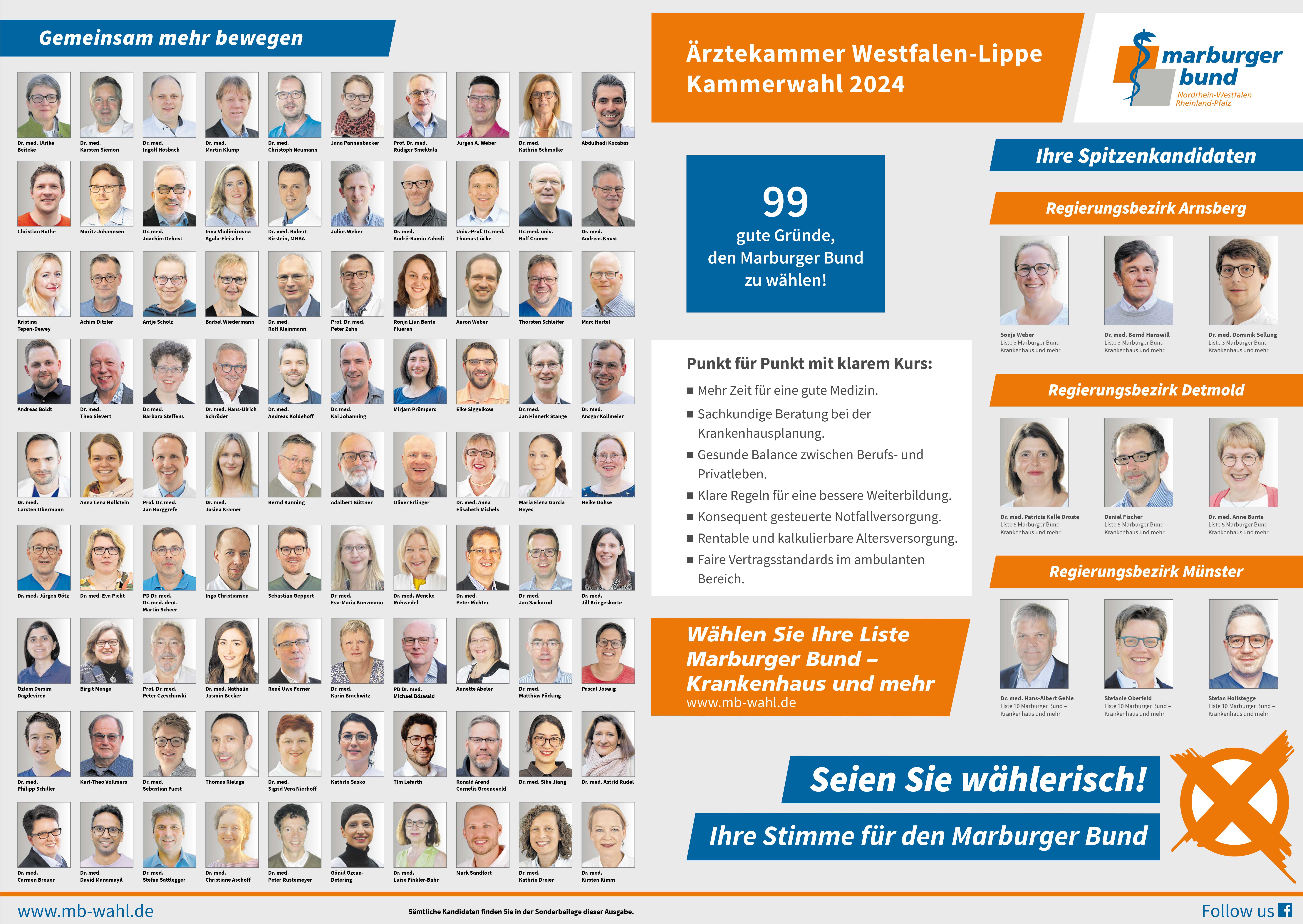 99 Kandidaten. Jede und jeder Einzelne gibt dem Marburger Bund vor Ort ein Gesicht: Es gibt viele gute Gründe, die Liste "Marburger Bund - Krankenhaus und mehr" zu wählen.