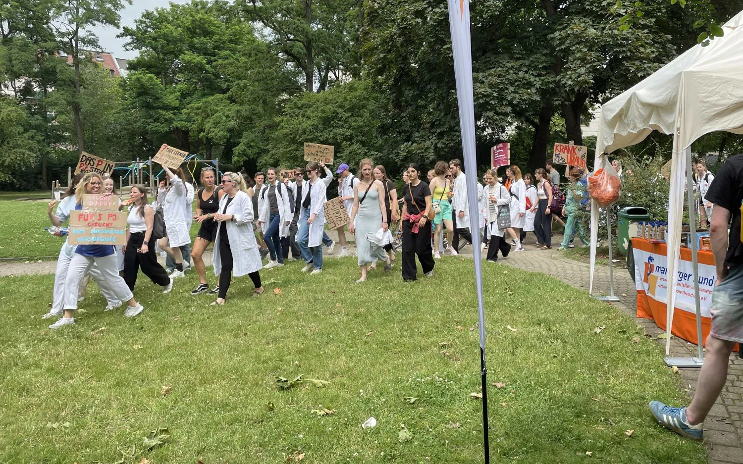 Das Praktische Jahr (PJ) soll am Ende des Medizinstudiums nach zehn theoriebetonten Semestern auf den Berufsalltag vorbereiten. Die Bundesvertretung der Medizinstudierenden in Deutschland e.V. (bvmd) ruft seit zwei Jahren in Folge die Fachschaften der Medizinstudierenden dazu auf, während einer bundesweiten Aktionswoche im Juni mit Demonstrationen und Kundgebungen bessere Bedingungen im PJ zu fordern. Der MB Sachsen unterstützt die Forderungen der Medizinstudent/-innen in Dresden und Leipzig.