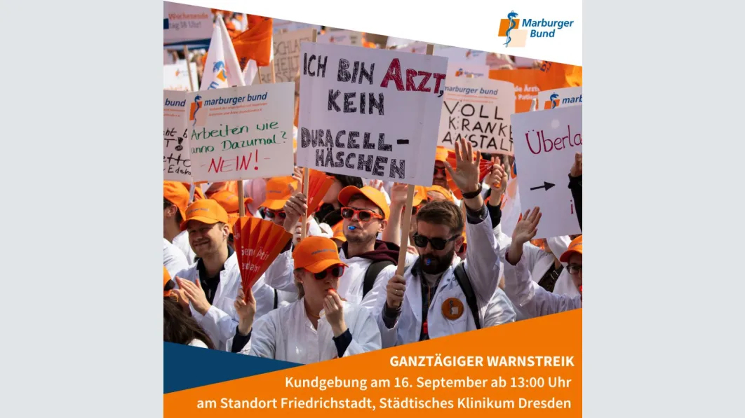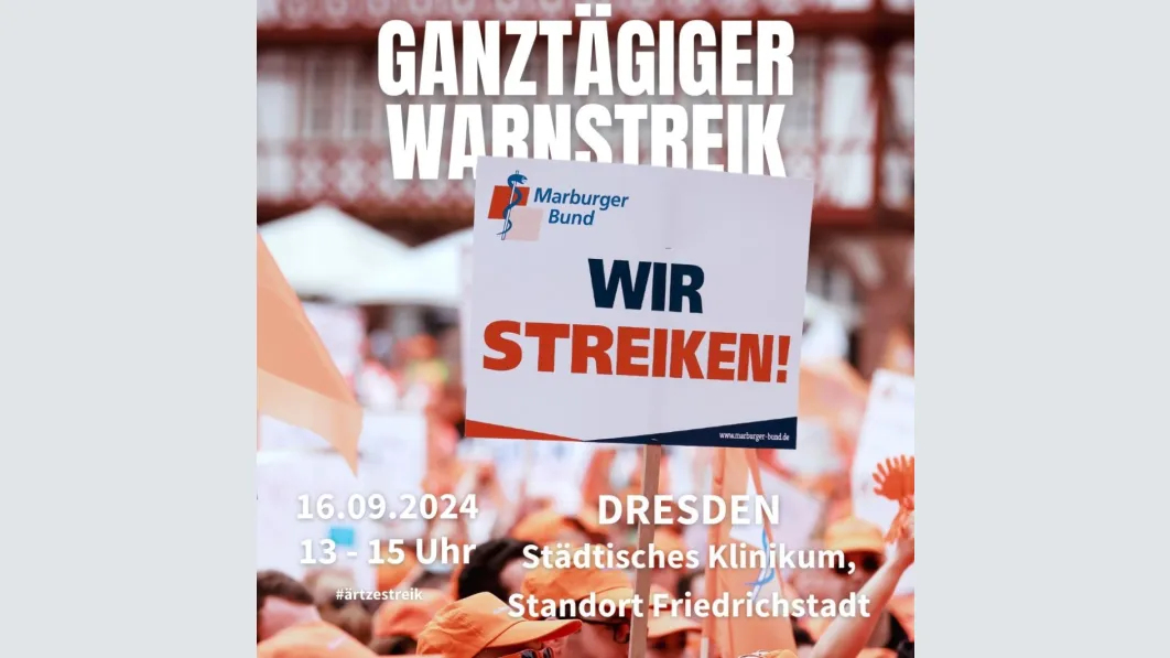 Durch den Warnstreik wird es zu Einschränkungen in der Versorgung an allen Standorten des Städtischen Klinikums Dresden kommen. Um die Notfallversorgung der Patientinnen und Patienten während des Warnstreiks sicherzustellen, hat der Marburger Bund Sachsen mit der Geschäftsführung des Städtischen Klinikums eine Notdienstvereinbarung abgeschlossen.